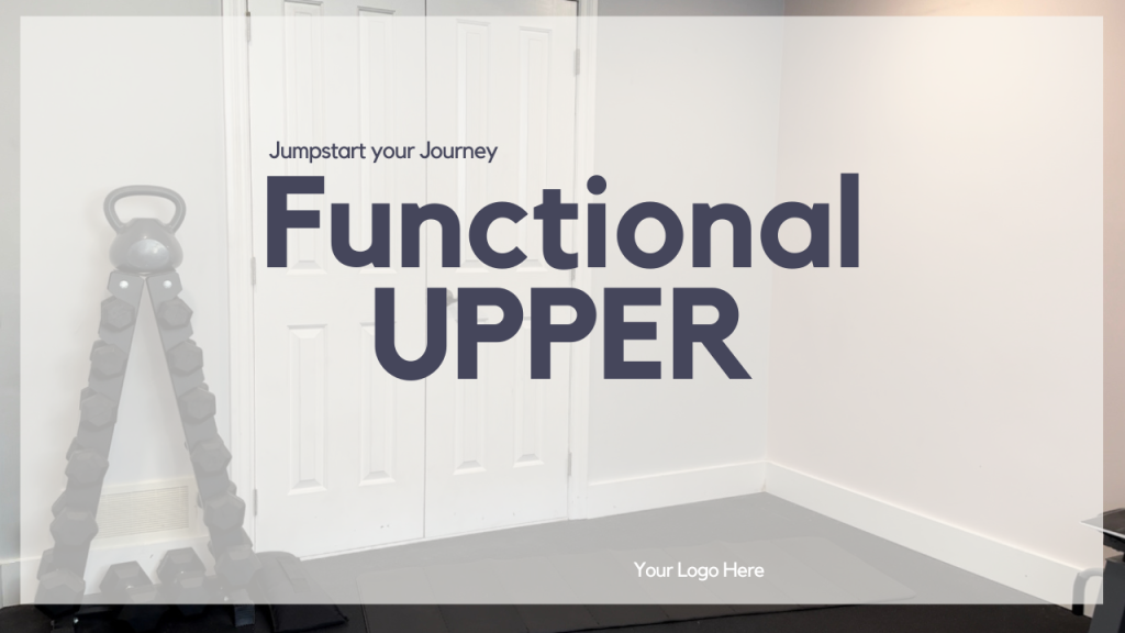 Description: Jumpstart your journey to UPPER strength in this Functional Upper workout. Shoulders, back, biceps, triceps, chest and core! Getting it all done.